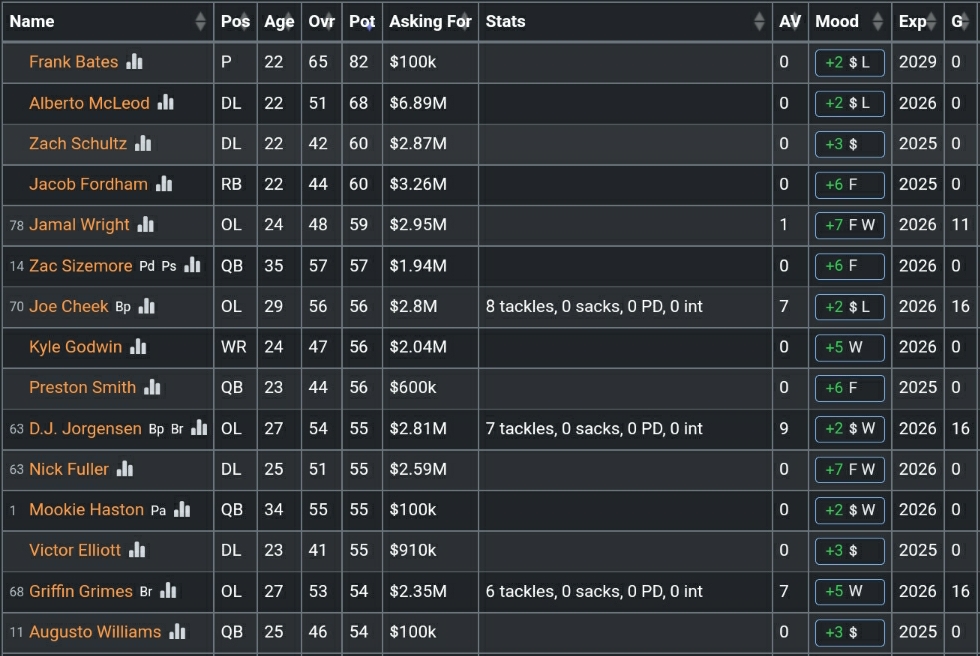 This board is for training young talent and maintain them. Any player under the age of 25 may be put on this board. As long as they are not removed they may remain on this board until they are 30.