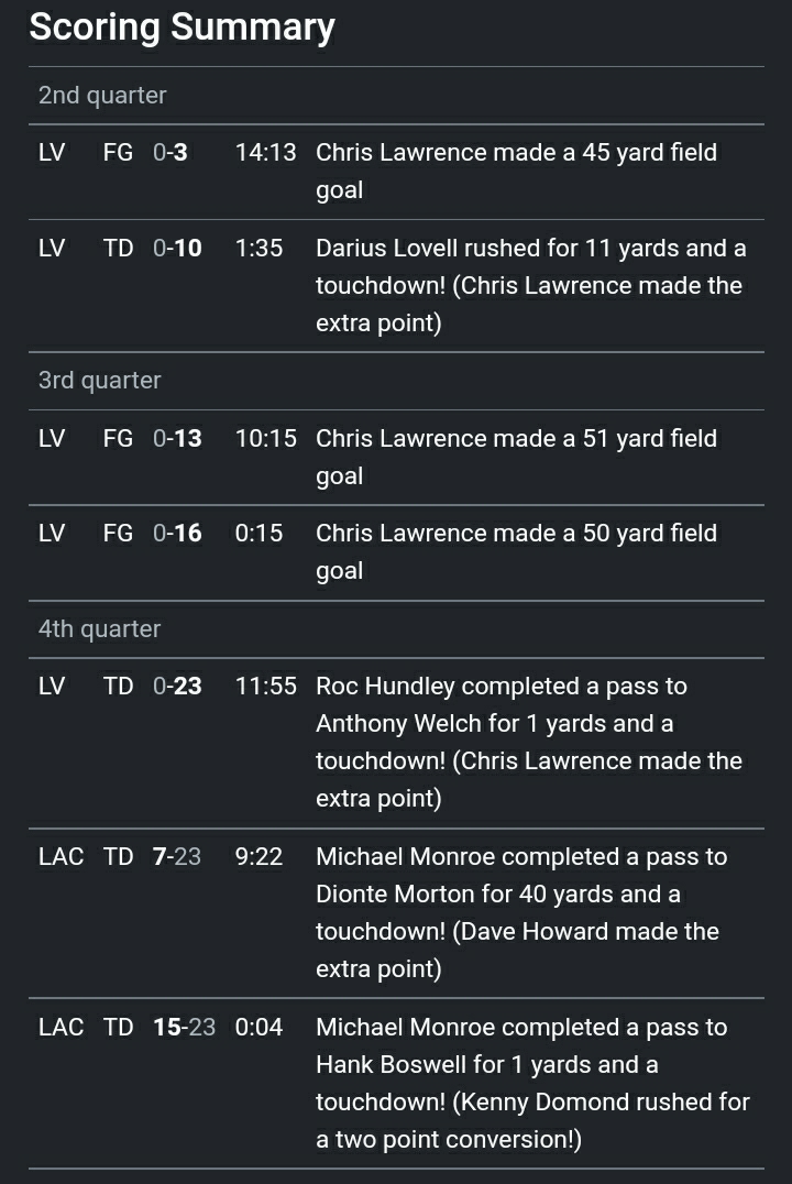 Las Vegas Raiders Results